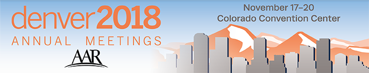 The 2018 AAR Annual Meeting will be held in Denver, Colorado, November 17–20. Information and registration can be found at www.aarweb.org.